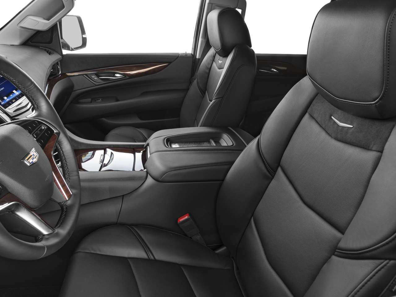 4WD, Black Leather, 12-Way Power Front Passenger Seat Adjuster, 16 Speakers, 2-Position Memory For Drivers Seat Adjuster, 3.23 Axle Ratio, 3rd row seats: split-bench, 4-Wheel Disc Brakes, ABS brakes, Adaptive suspension, Adjustable pedals, Air Conditioning, Alloy wheels, AM/FM radio: SiriusXM, Apple CarPlay/Android Auto, Auto High-beam Headlights, Auto tilt-away steering wheel, Auto-dimming door mirrors, Auto-leveling suspension, Automatic temperature control, Black Front License Plate Bracket, Bodyside moldings, Bose Centerpoint 16 Speaker Surround Sound System, Brake assist, Bumpers: body-color, CD player, Compass, Delay-off headlights, Driver Awareness Package, Driver door bin, Driver vanity mirror, Dual front impact airbags, Dual front side impact airbags, DVD-Audio, Electronic Stability Control, Emergency communication system: OnStar and Cadillac connected services capable, Exterior Parking Camera Rear, Forward Collision Alert, Front anti-roll bar, Front Bucket Seats, Front Center Armrest w/Storage, Front dual zone A/C, Front reading lights, Front wheel independent suspension, Fully automatic headlights, Garage door transmitter, HD Radio, Heads-Up Display, Heated & Cooled Front Bucket Seats, Heated door mirrors, Heated front seats, Heated rear seats, Heated steering wheel, Illuminated entry, Inclination Sensor, IntelliBeam Automatic High Beam On/Off, Lane Change Alert w/Side Blind Zone Alert, Lane Keep Assist w/Lane Departure Warning, Leather Seating Surfaces, Leather Shift Knob, Leather steering wheel, Low Speed Forward Automatic Braking, Low tire pressure warning, Magnetic Ride Control Suspension, Memory seat, Navigation System, NavTraffic, Occupant sensing airbag, Outside temperature display, Overhead airbag, Overhead console, Panic alarm, Passenger door bin, Passenger vanity mirror, Pedal memory, Power door mirrors, Power drive