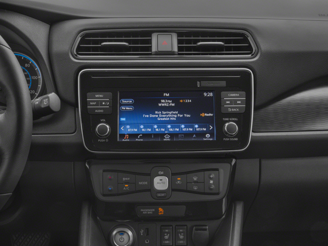 - Radio: NissanConnect w/Navigation -inc: navigation system w/voice guidance, 7" color display w/multi-touch control, voice recognition for navigation and audio, HD Radio, SiriusXM satellite radio, SiriusXM Traffic and Travel Link (weather, fuel prices, movie listings, stock info and sports), USB connection port for iPod interface and other compatible devices, Bluetooth® hands-free phone system, streaming audio via Bluetooth®, hands-free text messaging assistant, Apple CarPlay, Android Auto, NissanConnect Services powered by SiriusXM, 6 speakers and NissanConnect EV (telematics) - allowing for remote connection to the vehicle (monitor battery state of charge, start charging event and turn on HVAC system)