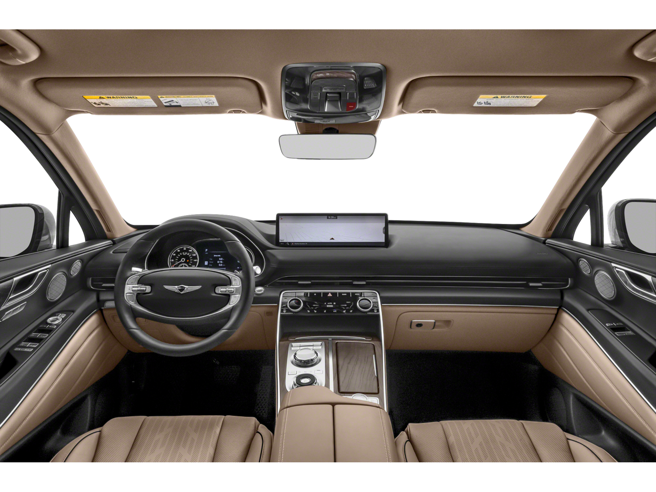 Inside, the GV80 emphasizes premium comfort and advanced technology. Heated and cooled leather seats, power tailgate, wireless charging, remote start, panoramic sunroof and Wi-Fi hotspot capability contribute to a luxury-focused driving experience. Its safety and driver-assistance suite includes lane departure warning, lane keep assist, blind spot monitoring, forward collision warning, automatic emergency braking and automatic high beams. The SUV also offers Apple CarPlay, Android Auto, navigation, satellite radio, rearview camera, alloy wheels and keyless entry with push-button ignition.