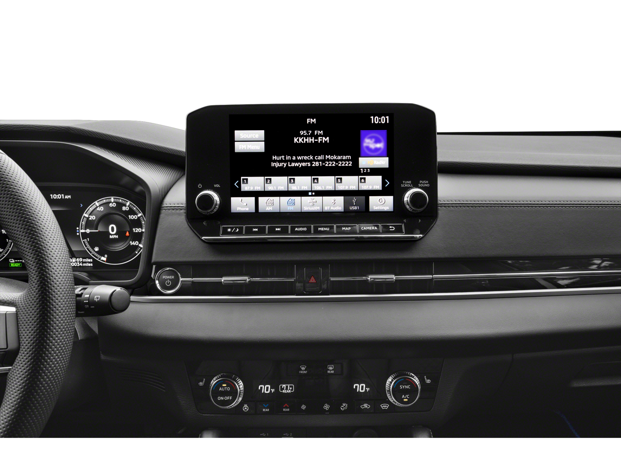 - Radio: AM/FM 9" Smartphone Link Display Audio -inc: navigation system, Apple CarPlay and Android Auto, SiriusXM satellite radio w/90 day SXM All Access and SXM Traffic and Travel Link subscription, HD Radio, Mitsubishi Connect w/safeguard and remote services and 24 month free trial (mobile app enrollment required), steering wheel audio and phone controls w/voice recognition, USB, 6 speakers and Bluetooth® wireless technology